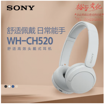 索尼(SONY)WH-CH520 舒适高效无线头戴式蓝牙耳机 舒适佩戴 音乐耳机 白色 SKU:yzwhyp111115