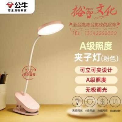 公牛(BULL)A级照度ML-D005B-DS充插两用无极调光宿舍LED夹子台灯粉色4000K SKU:yzwhyp321026