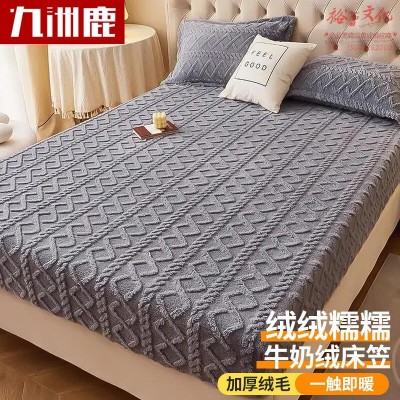 九洲鹿 法兰绒床笠 秋冬塔芙绒床罩床套 珊瑚绒防尘罩床垫保护套 1.5*2m SKU:yzwhyp321056