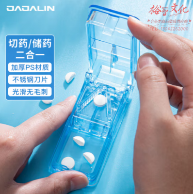 JAJALIN 切药器 药片分割器药片收纳盒粉碎器 2合1 蓝色 SKU:yzwhyp322572