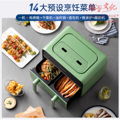 首页 > 电气设备 > 烹调电器 > 摩飞电器 (Morphyrichards)空气炸锅 家用8L大容量可视双炸篮多功能空气炸烤箱 炸薯条鸡翅机MR8100薄荷绿 SKU:yzwhyp322652