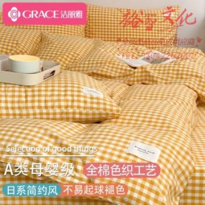 首页 > 装具 > 床褥单 > 洁丽雅纯棉四件套100%全棉被套床单枕套床上用品套件 黄小格1.5/1.8米床A类全面 SKU:yzwhyp111509
