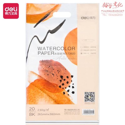 得力73920_8K水彩本230g美术绘画纸20张/包 (白色)(本) SKU:yzwhyp324245