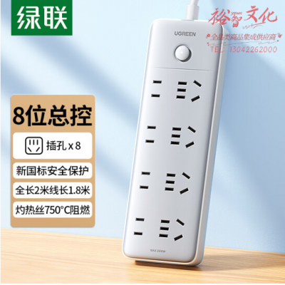 绿联(UGREEN)15079 新国标8位总控插座 插线板 接线板 4位五孔+4位两孔 1.8米 SKU:yzwhyp111594