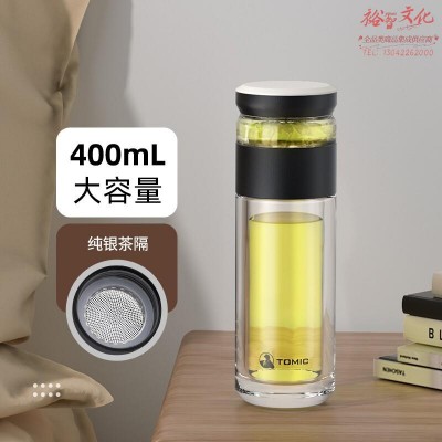 特美刻(TOMIC) 茶水分离杯双层泡茶玻璃杯男杯子高档茶杯TG80703Ti白色400ml SKU:yzwhyp204519