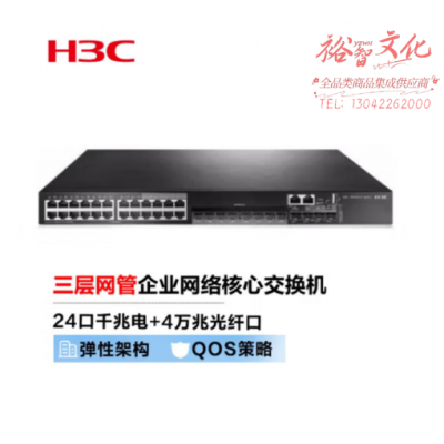 华三(H3C)S5500V2-28C-EI 24口千兆电+4万兆光纤口三层网管企业级网络核心交换机 单电源 SKU:yzwhyp324961