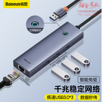 倍思 四合一USB3.0分线器*1(千兆网口+USB3.0*3)扩展坞 转千兆网口HUB集线器 SKU:yzwhyp111827