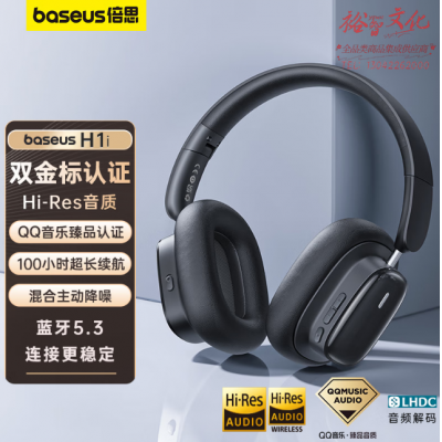 倍思H1i双金标版 头戴式蓝牙耳机真无线主动降噪 100小时超长续航 Baseus Bowie H1i黑色 SKU:yzwhyp111847