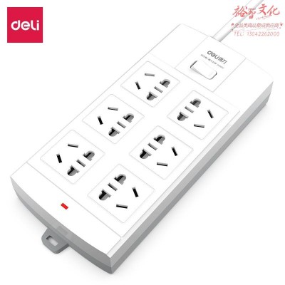 得力3995插座 六位总控3米 泡壳装(白)(只) SKU:yzwhyp326288