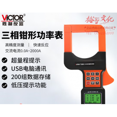 胜利仪器(VICTOR)三相数字钳形功率表 漏电流测量 大口径三相钳形功率计 VC7300A SKU:yzwhyp326573