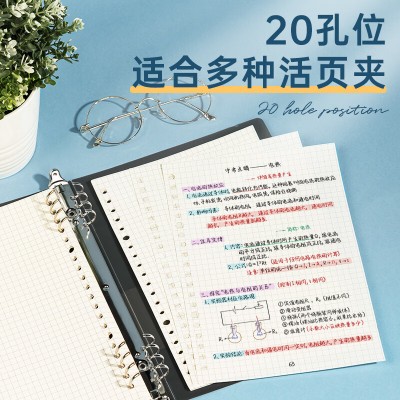 首页 > 办公用品 > 文具 > 得力 文具A5/60张活页本替芯20孔笔记本子活页纸内页考研复习作业本方格单本装NA560-2 SKU:yzwhyp205079