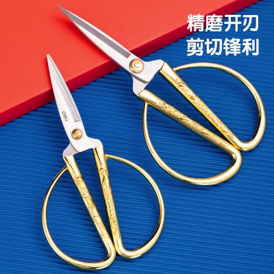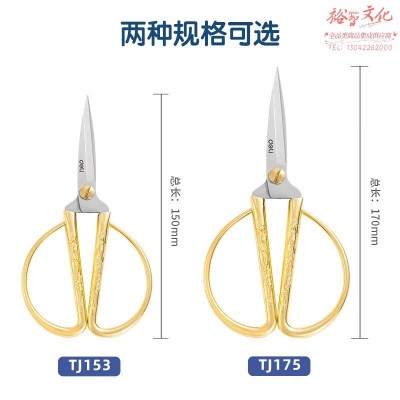 得力 170mm龙凤合金家用剪刀 不锈钢龙凤呈祥 开业剪彩 金色 TJ175 SKU:yzwhyp205086