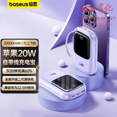 首页 > 电气设备 > 蓄电池及充电装置 > 倍思 Q电充电宝 自带线20000毫安时 支持苹果20WPD快充小巧便携移动电源 数显适用iPhone14/13ProMax/12/XR 紫 SKU:yzwhyp111963