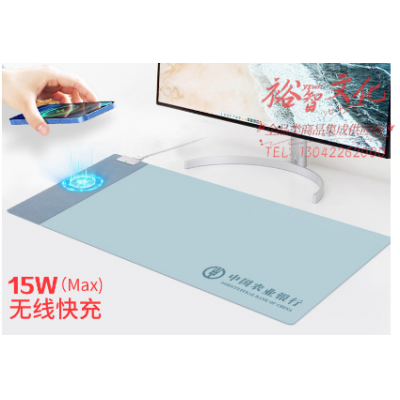 办公家用无线充鼠标垫纯色桌垫15W快充可印制图案logo SKU:yzwhyp327316