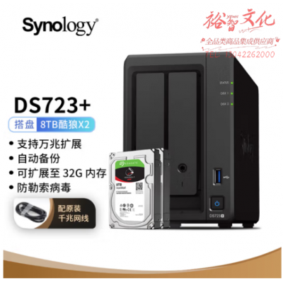 群晖(Synology)DS723 NAS搭配2块6TB群晖HAT3300硬盘套装 SKU:yzwhyp327393