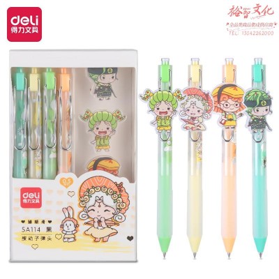 得力SA114卷卷国臻顺滑按动中性笔0.5mm子弹头(黑)(4支/盒) SKU:yzwhyp327522