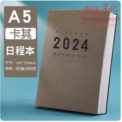 2024年日程本加厚商务办公软皮计划表每日效率手册 A5 羊巴皮2024 卡其色 SKU:yzwhyp328128