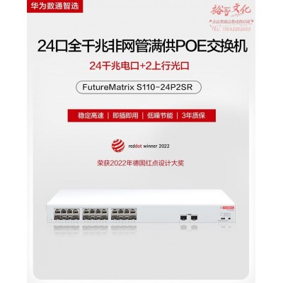 华为数通智选24口满供千兆POE交换机S110-24P2SR 24口千兆电+2上行光口企业级POE集线器中小企业办公 SKU:yzwhyp328176