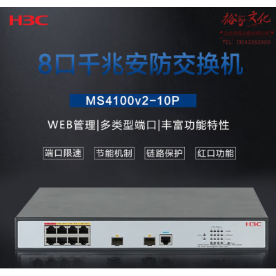 新华三(H3C)安防监控8口千兆电+2千兆光纤口二层网管企业级网络交换机 优先高速/链路聚合 MS4100V2-10P SKU:yzwhyp328259
