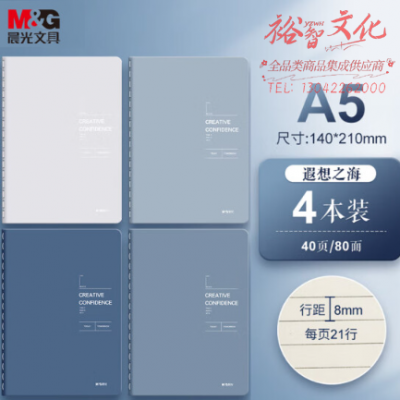 首页 > 办公用品 > 文具 > 晨光(M&G)文具A5/40张笔记本子缝线本 记事本高颜值错题本 中学生考研日记本 遐想之海4本装FA5491 SKU:yzwhyp328371