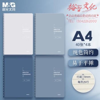 首页 > 办公用品 > 文具 > 晨光(M&G)文具A4笔记本子缝线本40张 记事本高颜值错题本 高中学生考研日记本 遐想之海4本装FA4412 SKU:yzwhyp328372
