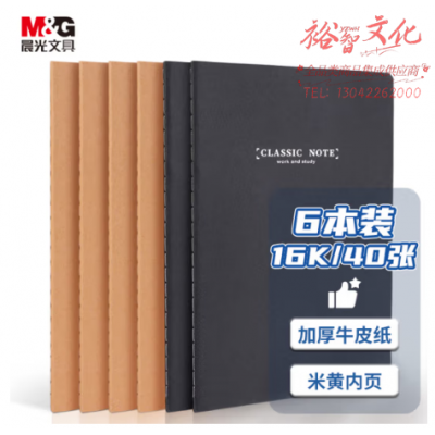 晨光(M&G)文具16K/40张牛皮纸缝线本 办公记事笔记本子 京优本质系列米黄内页学生软抄本 6本装APYFK77C SKU:yzwhyp328382