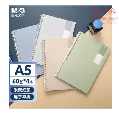 晨光(M&G)文具A5/60张螺旋线圈本 笔记本子错题记事本 学生日记本 淡染4本装 XA5624 SKU:yzwhyp328391