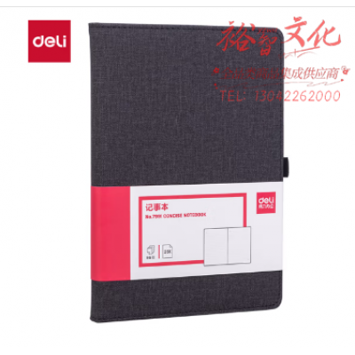得力(deli)25K96张简约布艺风记事本办公用品 工作日志本带笔插笔记本子文具 黑色7991 SKU:yzwhyp328459