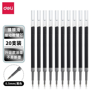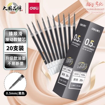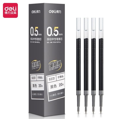 得力(deli) 20支/盒 臻顺滑按动中性笔芯签字笔水笔替芯0.5mm子弹头S221 SKU:yzwhyp112077