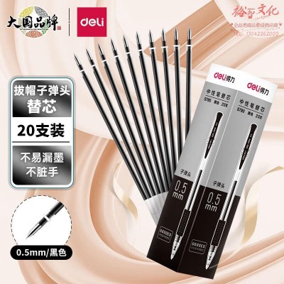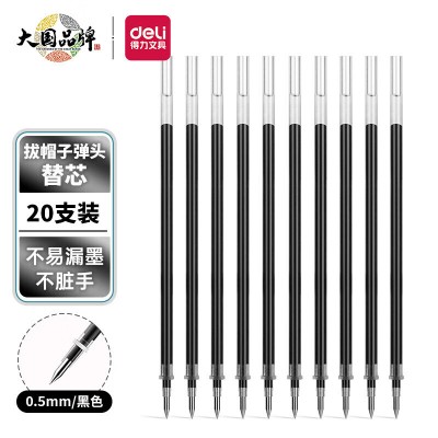 得力(deli) 20支/盒 S790中性笔芯替芯0.5mm黑色子弹头 SKU:yzwhyp112109