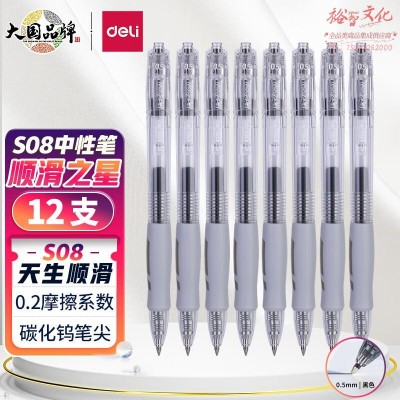 得力(deli)【顺滑之星】臻顺滑系列0.5mm子弹头中性笔 无印风签字笔水笔办公文具 黑色 1支 S128 SKU:yzwhyp112179
