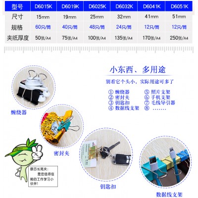 康百金色夹子大号长尾夹试卷夹小号燕尾夹文件票据夹办公文具用品 金色-15mm/60只装/D6015K SKU:yzwhyp112643