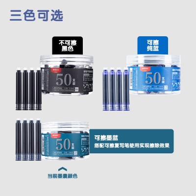 晨光(M&G)文具0.9ml可擦墨蓝色墨囊可替换蓝黑色钢笔墨囊学生练字钢笔水50支/盒AIC47649开学文具 SKU:yzwhyp113017