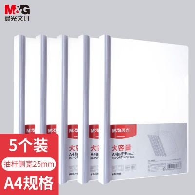 晨光(M&G) 5个装A4/25mm透明抽杆夹 大容量办公报告学生考试收纳拉杆夹 资料整理收纳文件夹ADMN4279I SKU:yzwhyp113042