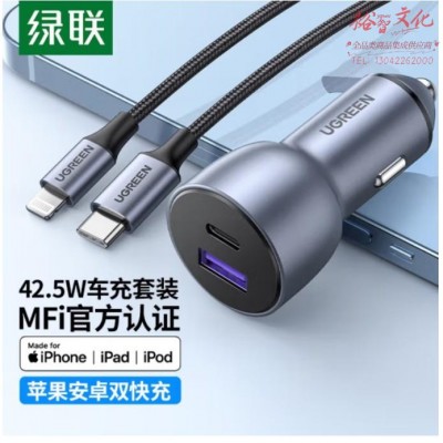绿联车载充电器苹果PD20W快充 MFi认证iPhone14/13车充套装含数据线 50673 SKU:yzwhyp800254