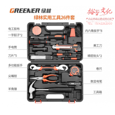 绿林(GREENER)家用工具箱套装五金工具多功能家庭电工木工电讯维修 实用26件套 SKU:yzwhyp801198
