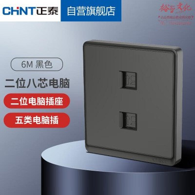 正泰(CHNT)86型墙壁面板 暗装窄边框面板二联八芯数据插座6M黑色2659 SKU:yzwhyp802013