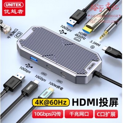 优越者D029N Type-C扩展坞10G分线器4K60Hz高清拓展坞千兆网口转换器 SKU:yzwhyp802104
