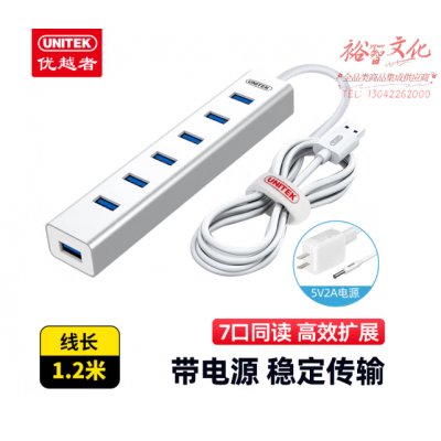 优越者Y-3090ASL USB3.0分线器7口高速扩展坞 1.2米白SKU:yzwhyp802456