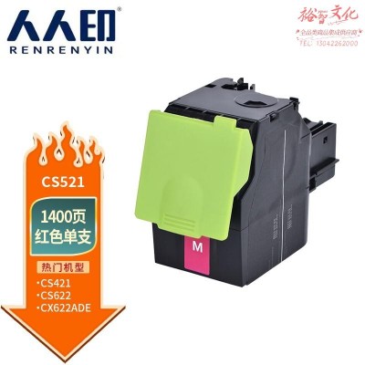人人印 CS521粉盒 红色 适用利盟/Lexmark CS421 CS521 CS622 CX421 CX522 CX622 SKU:yzwhyp803160