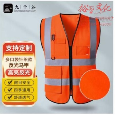 九千谷 反光背心马甲反光衣 建筑施工交通警示反光服安全服多口袋针织布橙色 均码 SKU:yzwhyp803272