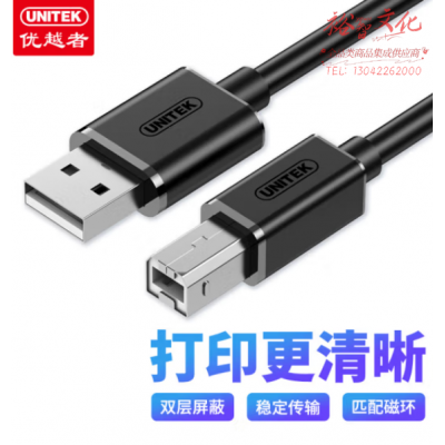 优越者Y-C4001EBK USB2.0高速打印机线 AM/BM方口接头数据连接线2米 SKU:yzwhyp803666