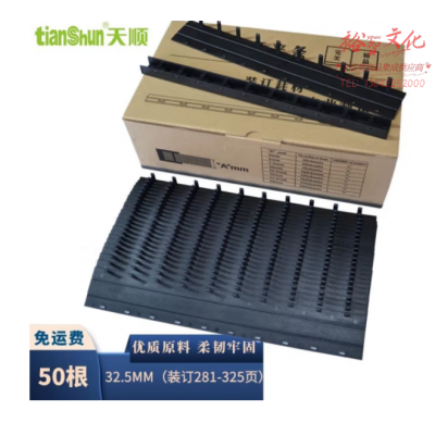 天顺 10孔装订夹条 黑色压条 A4适用厚度3MM到36MM梳式塑封夹条 32.5mm 50支装(281-325页)SKU:yzwhyp805349