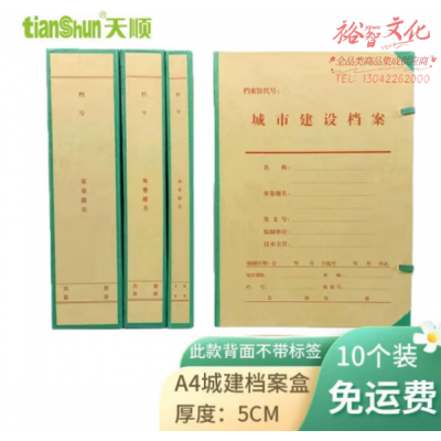 天顺 A4城市建设档案盒 牛皮纸 背宽5CM 10个装 SKU:yzwhyp805470