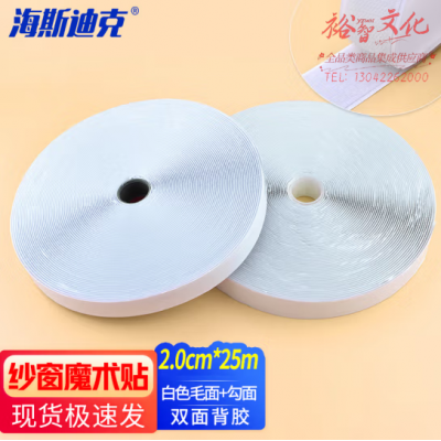 海斯迪克 强力背胶魔术贴 2.0cm*25m白色毛面+白色勾面 HKW-125 SKU:yzwhyp806585