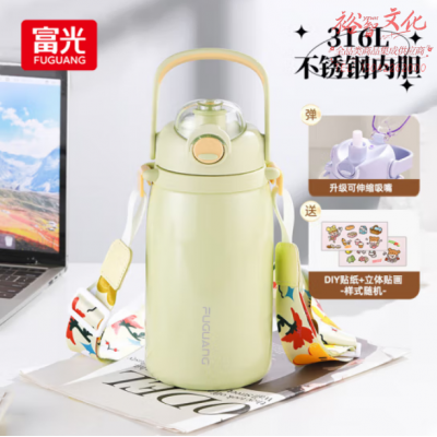 富光 WFZ1220-1300保温杯316L不锈钢大容量水杯壶 双饮吸管杯 1.3L绿色 SKU:yzwhyp807387
