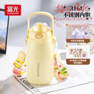 富光 WFZ1220-1300保温杯316L不锈钢大容量水杯壶 双饮吸管杯 1.3L黄色 SKU:yzwhyp807410