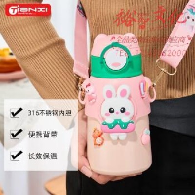 天喜(TIANXI)TBP1130-01-C儿童保温杯 带提环吸管316水杯 520ml粉色小兔 SKU:yzwhyp807508