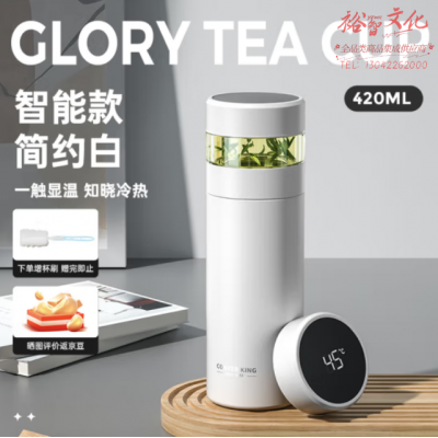 炊大皇(COOKER KING)RY42Z2保温杯316L不锈钢便携大容量茶水分离 智能温显420ml简约白 SKU:yzwhyp807634