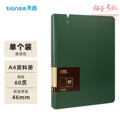 天色(TIANSE)A4/60页资料册 加厚插页文件夹活页夹 TS-1660 墨绿色 SKU:yzwhyp807830